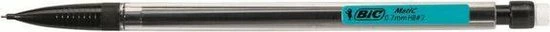 Potloodstift: 07 mm. Bevat 3 stiften HB van 9 cm. Transparante houder. Clip in 7 geassorteerde kleuren. Met gum. Niet-navulbaar.