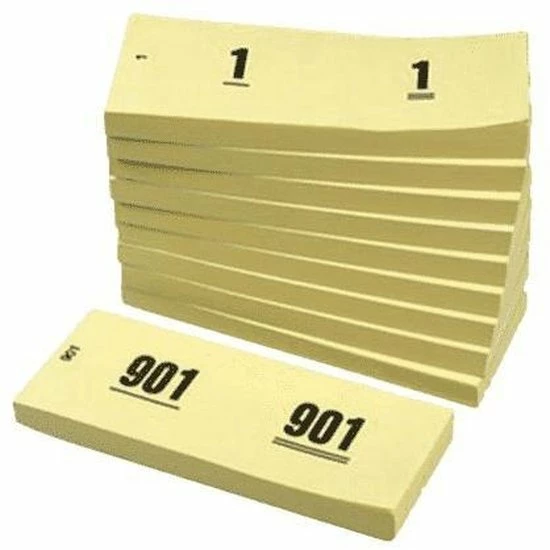 Dubbele blokken genummerd van 1 tot 1.000, voorzien van middenperforatie waardoor ze makkelijk af te scheuren zijn. De lootjes zitten verpakt in een doosje met 10 blokjes van 100 nummers. Deze dubbele nummers kan je goed gebruiken bij een loterij, garderobe of wachtrijnummers.