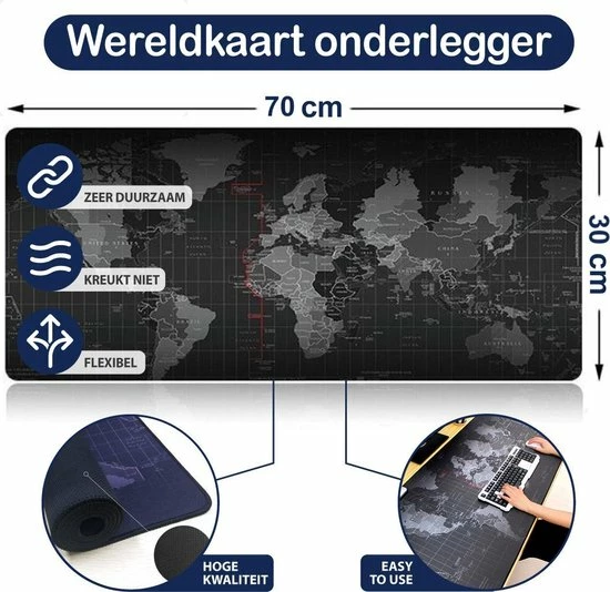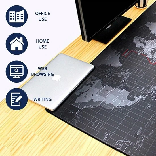 De stijlvolle wereldkaart bureau-onderlegger zal ervoor zorgen dat iedere muisbeweging goed geregistreerd wordt. Het maakt niet uit of u de bureau-onderlegger gebruikt bij normaal computerwerk of bij hardcore gaming, de muis glijdt met gemak over de zachte oppervlakte. Zo zullen al uw prestaties verbeteren!